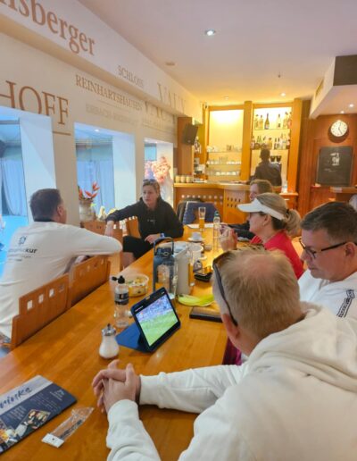 Gespielt wurde innerhalb der Gruppen Jeder gegen Jeden. Die Matches waren spannend und herausfordernd. Auch wenn immer nur bis 4 gespielt wurde und der entscheidende 3. Satz als Satz-Tiebreak gespielt wurde, war es auf Dauer schon sehr anstrengend. Das merkte man den Teilnehmenden dann auch nach der Vorrunde an.